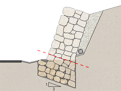 El talús o el vessant natural presentarà una superfície regular i absència de sortints, de zones amb restes vegetals i d'aflorament d'aigües.